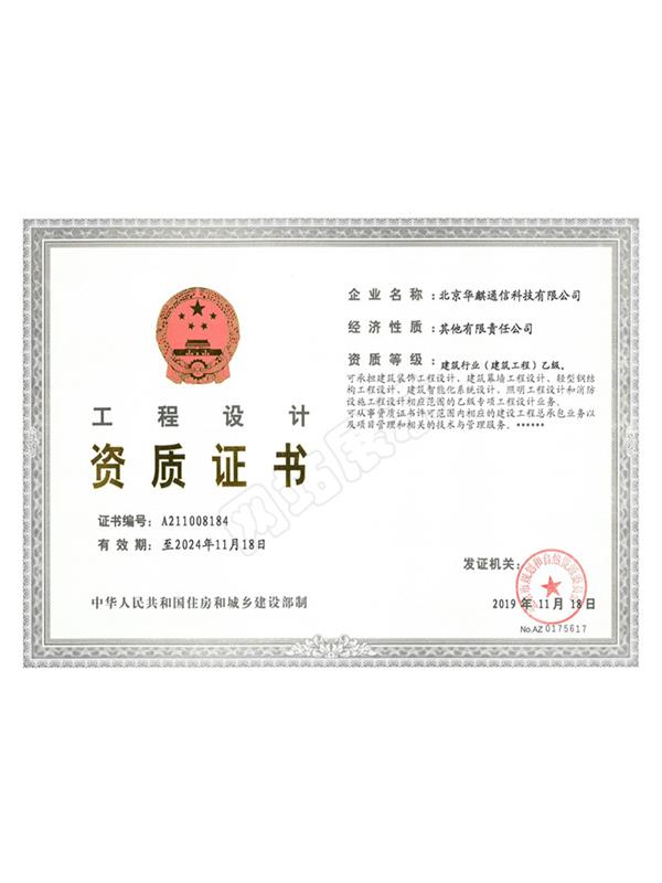 • 工程設(shè)計(jì)(建筑行業(yè)乙級(jí))資質(zhì)證書(shū)正本
