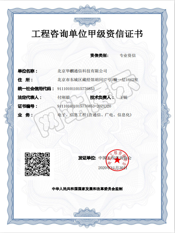 北京華麒通信科技有限公司(以下簡(jiǎn)稱(chēng)我司)始建于1986年,目前注冊(cè)資本金10261.506萬(wàn)元,在通信服務(wù)行業(yè)內(nèi)具有悠久的發(fā)展歷史和良好的服務(wù)口碑,咨詢(xún)經(jīng)驗(yàn)豐富,獲得多項(xiàng)專(zhuān)業(yè)甲級(jí)資質(zhì)并被評(píng)為高新技術(shù)企業(yè)。