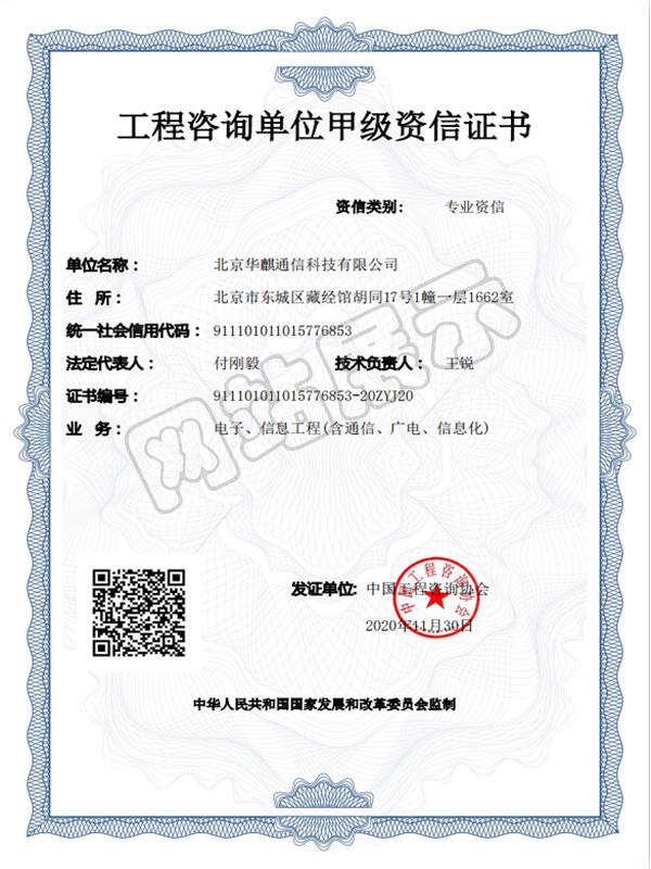 • 工程咨詢(xún)甲級(jí)資信證書(shū)