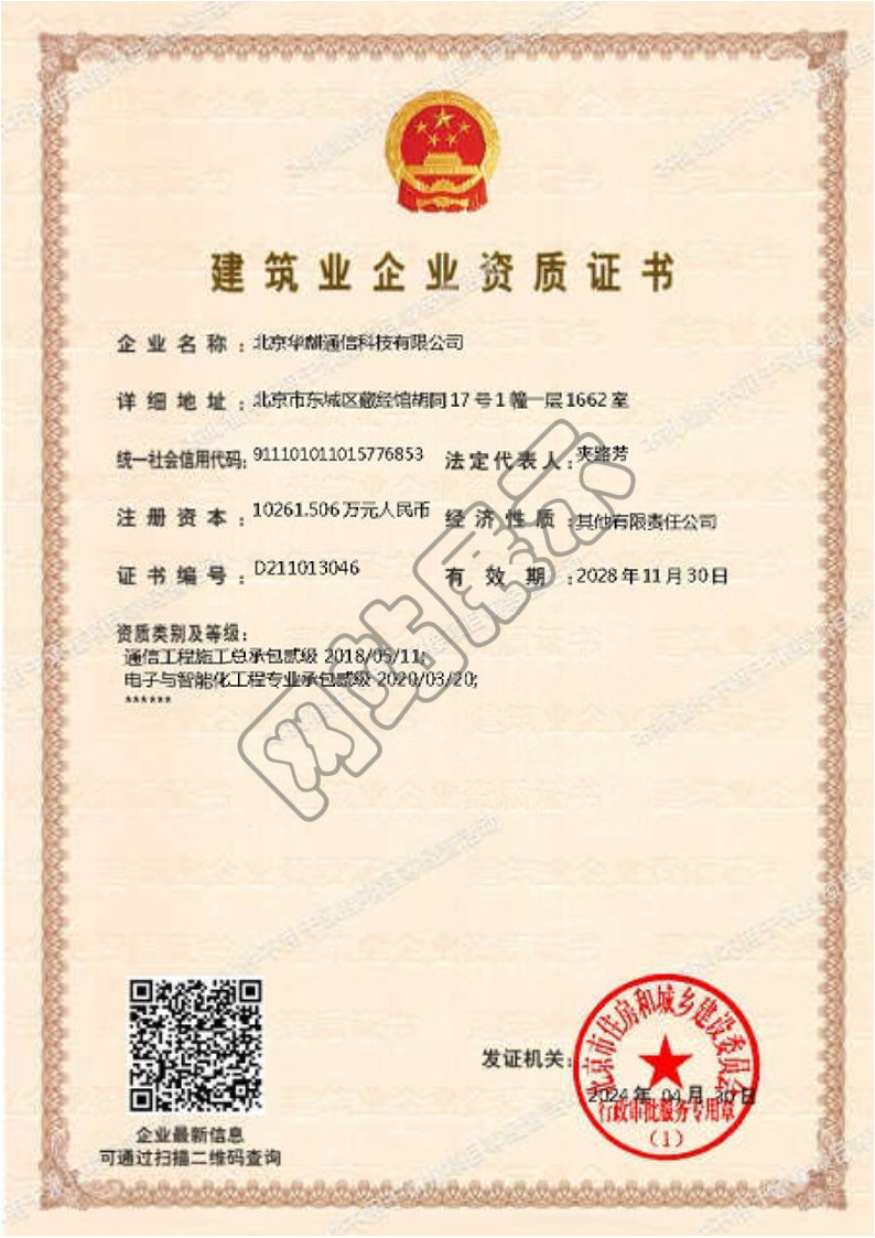 • 通信工程施工總承包貳級(jí)資質(zhì)證書(shū)